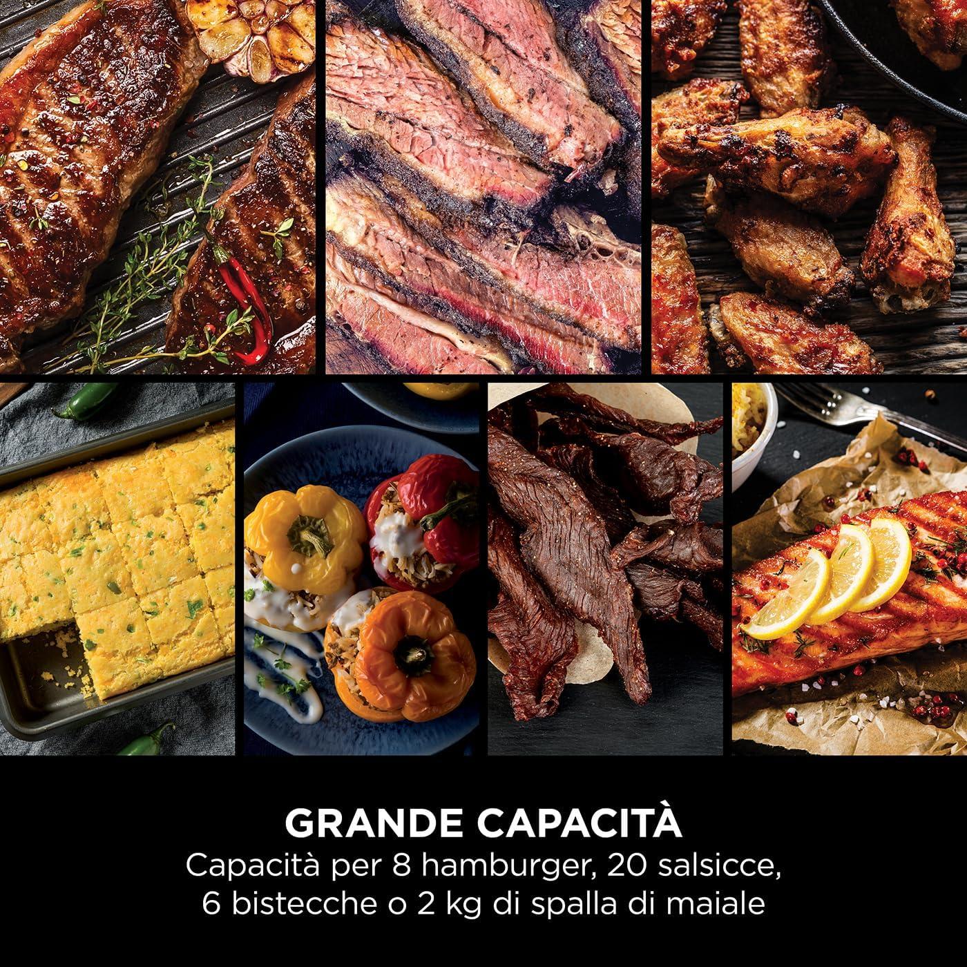 Ottieni la rosolatura e l’autentica finitura della brace di un barbecue tradizionale, senza problemi. Griglia qualsiasi cosa da salsicce, spiedini e hamburger in classico stile barbecue a tenere fette di punta di petto, succose bistecche, costolette caramellate, tranci di tonno, verdure grigliate e tanto altro. Griglia con il coperchio aperto per una vera esperienza barbecue o lascia fare tutto a Ninja con la comoda cottura a coperchio chiuso, ideale per cuocere a puntino i tagli di carne più spessi o gli ingredienti congelati. -