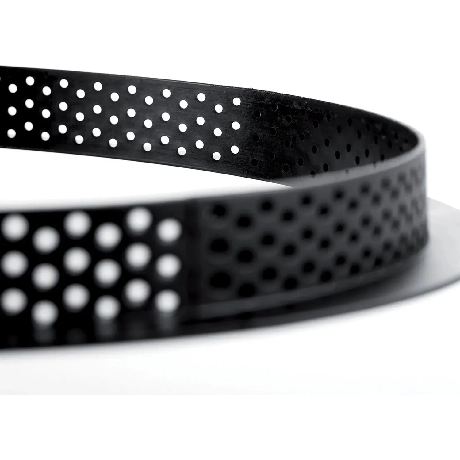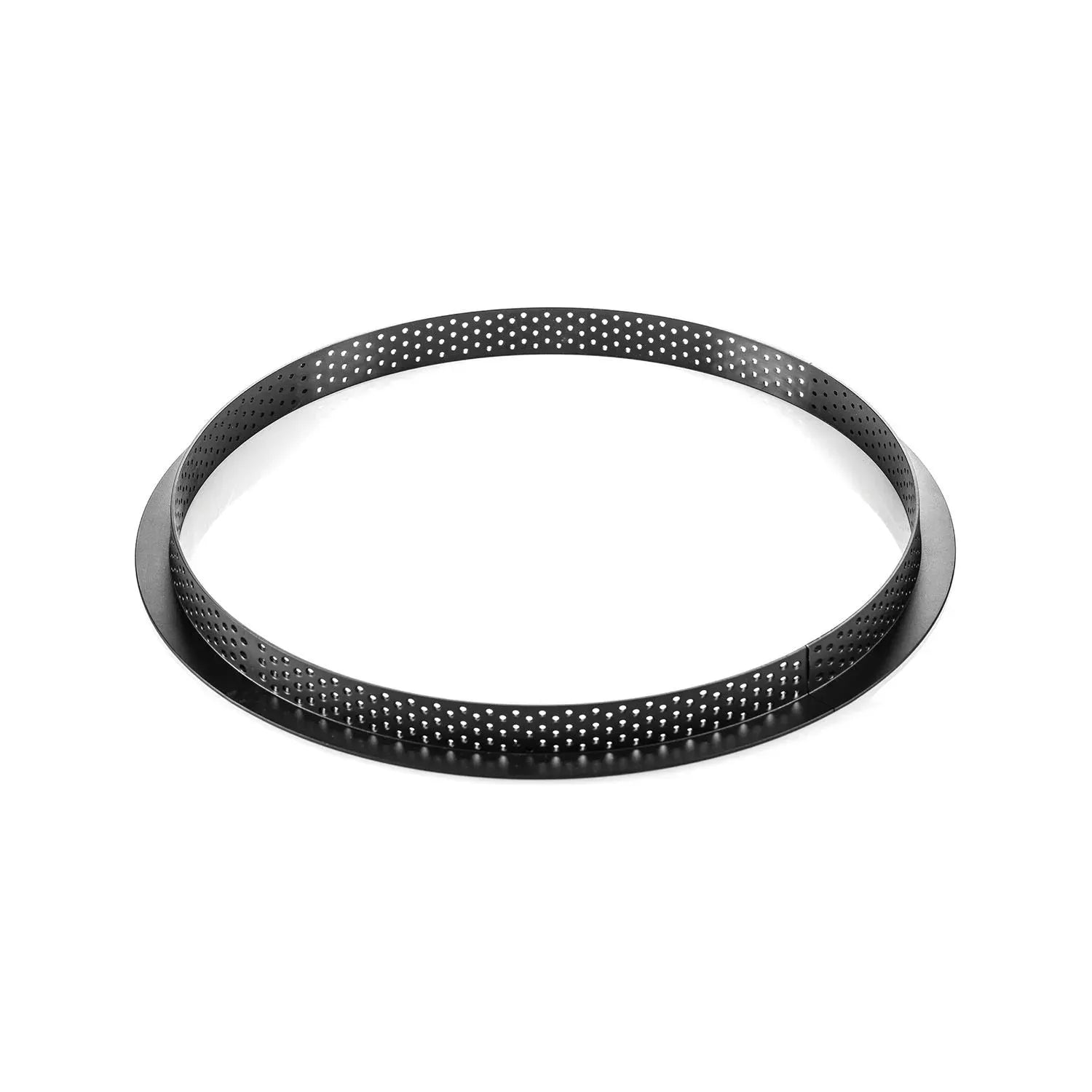 un anello, di forma rotonda, delle misure di Ø 25 cm H 2 cm, realizzato in materiale composito termoplastico, antiurto, antiaderente e inossidabile, adatto per la cottura in forno e per creare la base della crostata con bordi impeccabili, consente una cottura omogenea ed è caratterizzato da un'alta stabilità termica, grazie ai microfori che permettono all'umidità di evaporare.